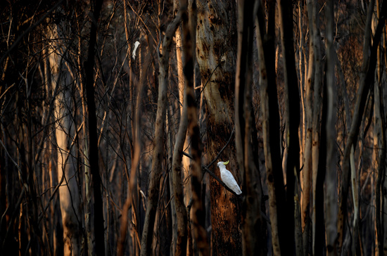 1月12日在距澳大利亚首都堪培拉一个多小时车程的温杰洛村附近拍摄的林火过后的景象◈✿ღ。储晨/摄(新华社发)